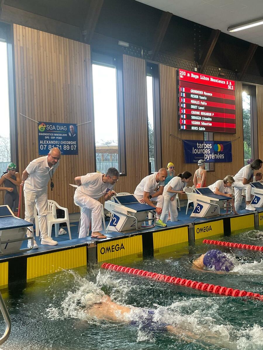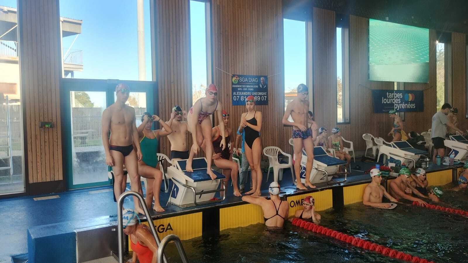 10 Nageurs présents ce week end pour la compétition régionale à Tarbes, un grand merci à Sam Sébastien Yann et Jérémy pour l'accompagnement