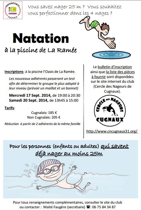 Les cours de natation du club sont ouverts aux personnes (enfants, adultes) sachant déjà nager au moins 25m sans matériel (bouée, brassards...).