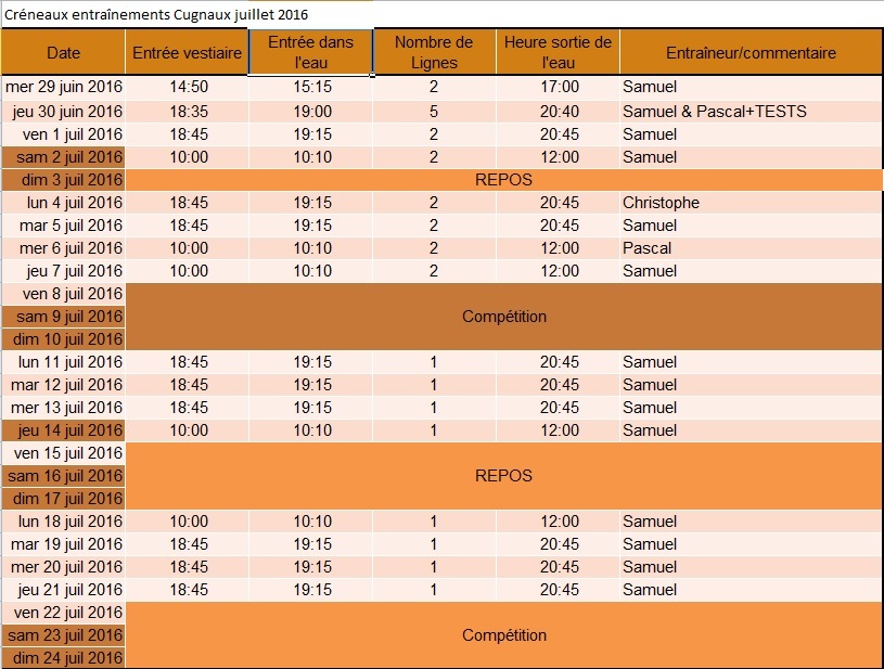 Ci-joint le planning de juillet 2016 pour les nageurs qualifiés N2 et France