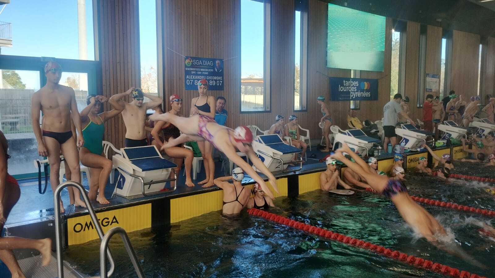 10 Nageurs présents ce week end pour la compétition régionale à Tarbes, un grand merci à Sam Sébastien Yann et Jérémy pour l'accompagnement